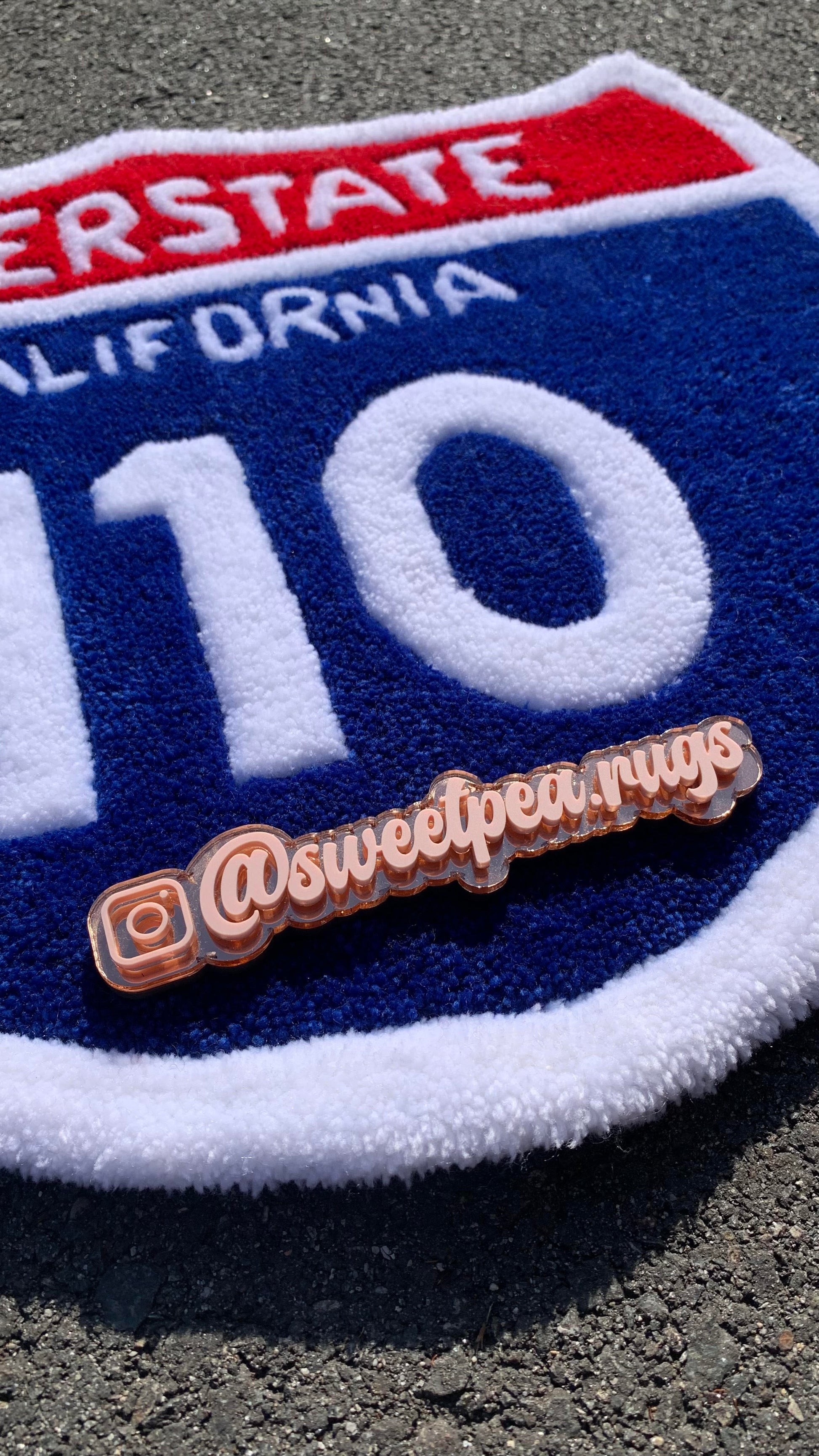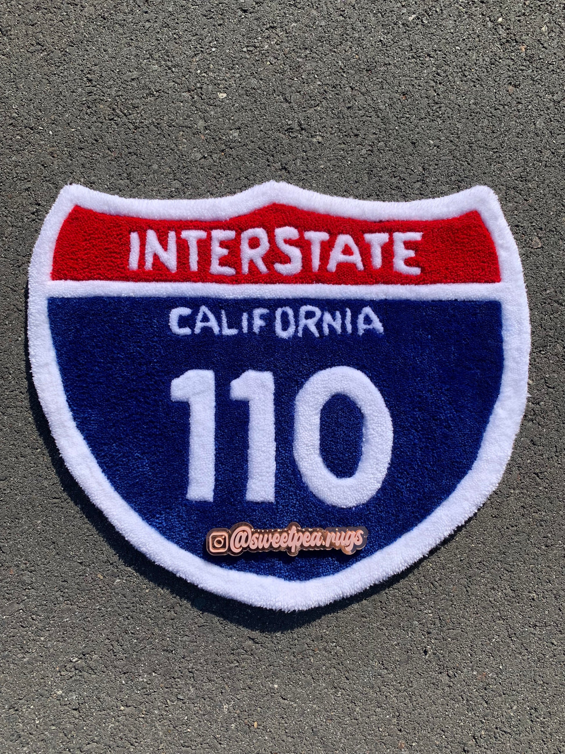 Handmade 110 Fwy sign rug.