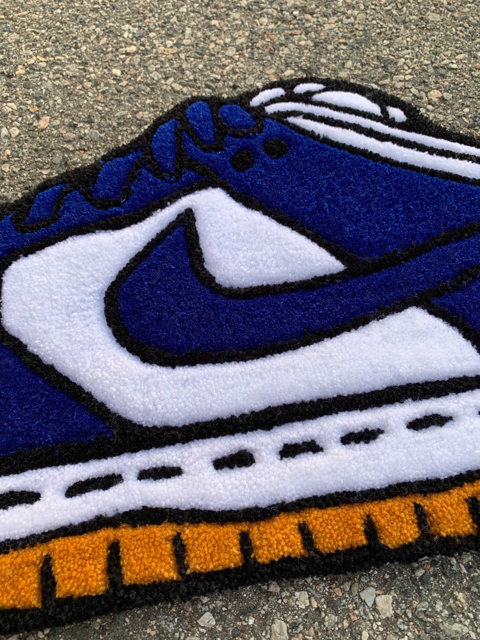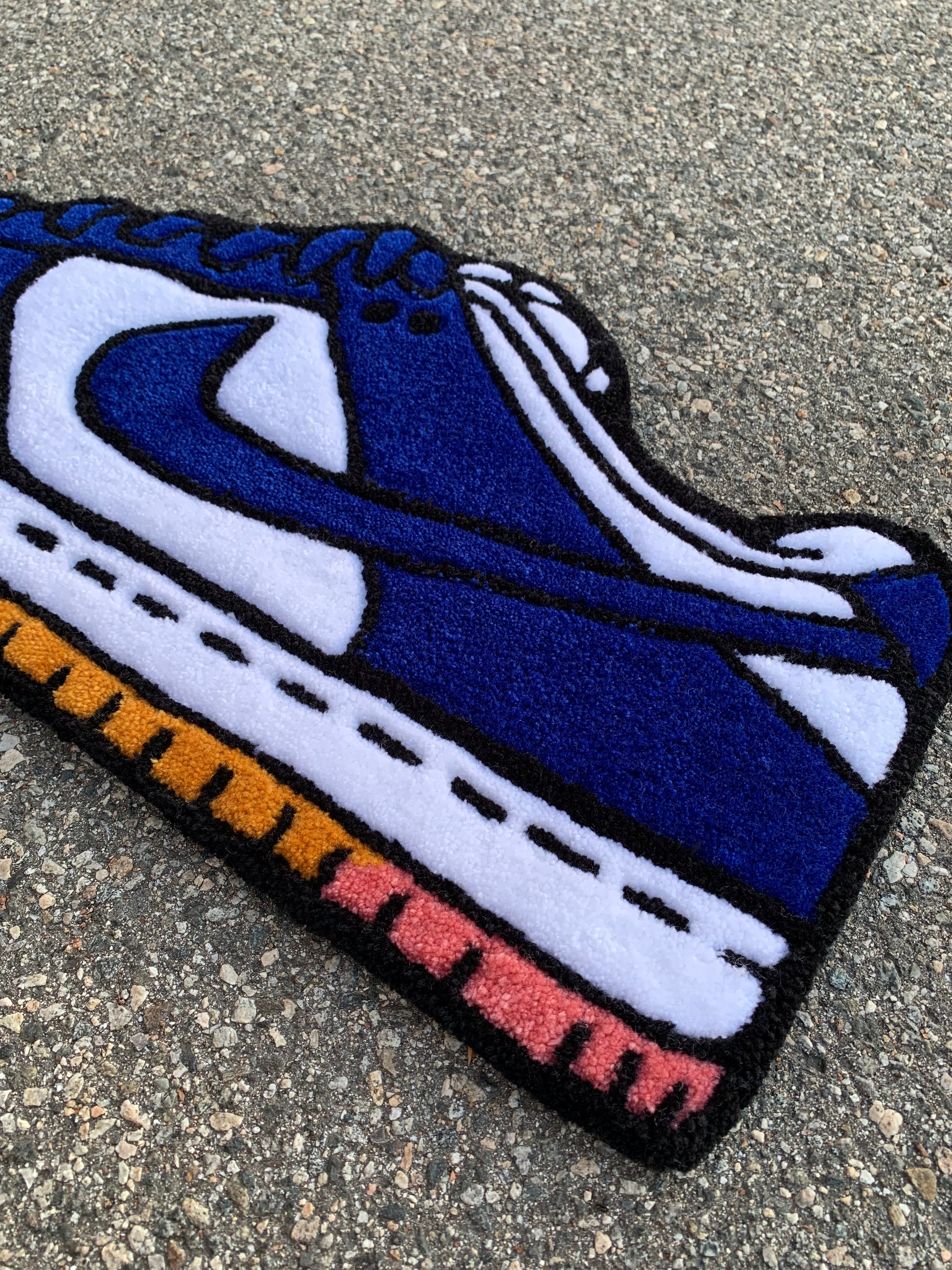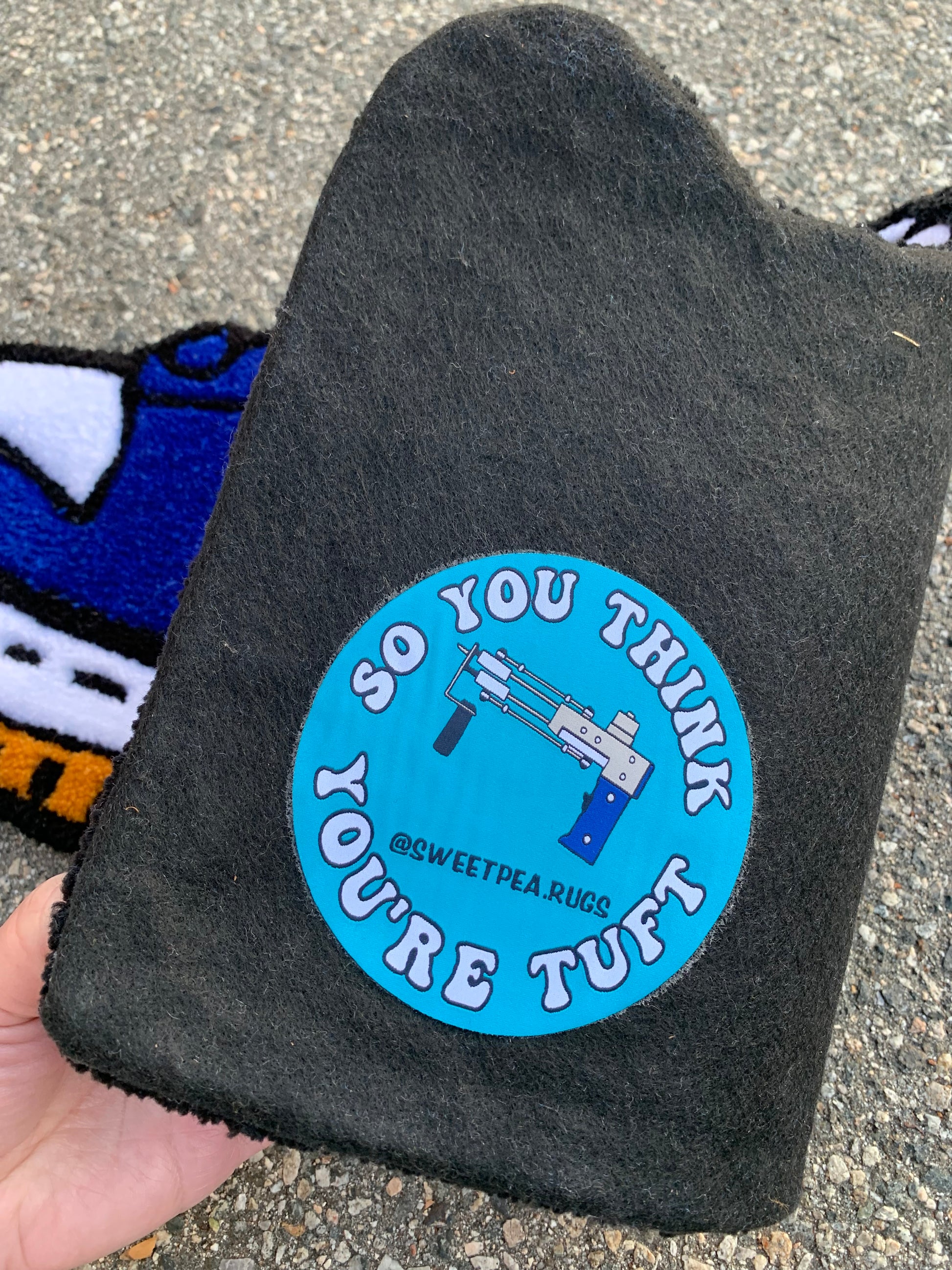 2.5-foot tufted rug made of 100% acrylic yarn and backed with felt.